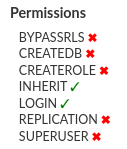 Example for PostgreSQL: An example permission LOGIN defines if you can login to the database.