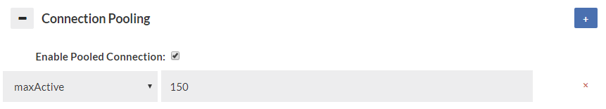 Warning: Not all applications will be compatible with connection pooling. If issues are observed in initial application testing, it is recommended that disabling connection pooling be performed in order to isolate if this feature is triggering undesirable behaviors in the application. If using the connection pooling, the default number of connections is set to 1000. To adjust this, change the “maxActive” setting to the desired number of connections.