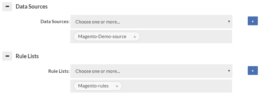 Like the data source, the rule list selector configures what rules should be attached to the vdb. If empty, no rule list will be used. All rule lists that are used by the initial (default) rule-list must be specified or they will not be executed. A reasonable attempt will be made to insure that the rules used in "call" actions are automatically populated here, but in some rare corner cases (with dynamically generated properties), all rules will need to be specified here. The log may generate warnings if this is not setup properly.
