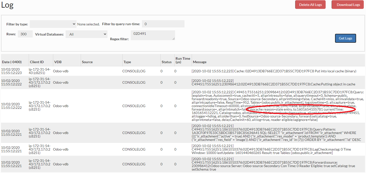 2) Next, pass traffic you expect to be cached, and find the query hash value in the log tab (each unique query will have a unique hash):